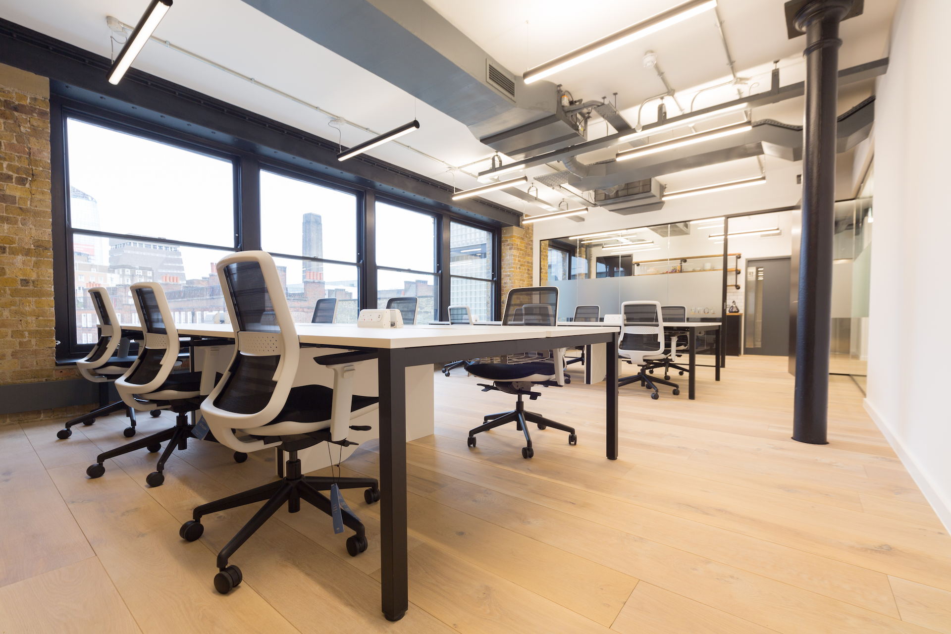 Features of this workspace include exposed brick walls, wooden flooring, and a creative boutique interior. This workplace benefits from a new eye-catching fit-out.